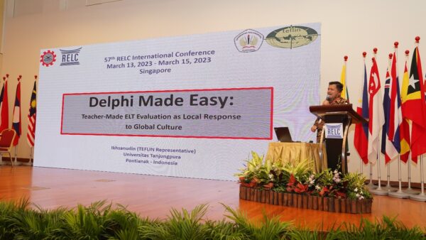 Invited by the Planning Committee, Dr Alvin pang, TEFLIN sent a representative to the 57th RELC International Conference. The conference took place on March 13, 2023 – March 15, 2023, at SEAMEO Regional Language Centre, 30 Orange Grove Road, Singapore 258352. The conference theme was “Rethinking English Language Teaching and Learning for a COVID-19 Endemic World: Global, Glocal and Local Perspectives”. The TEFLIN representative was Ikhsanudin, the coordinator of TEFLIN Kalimantan Barat Chapter and a lecturer for Universitas Tanjungpura. His topic was “Delphi Made Easy: Teacher-Made ELT Evaluation as a Local Response to Global Culture”.