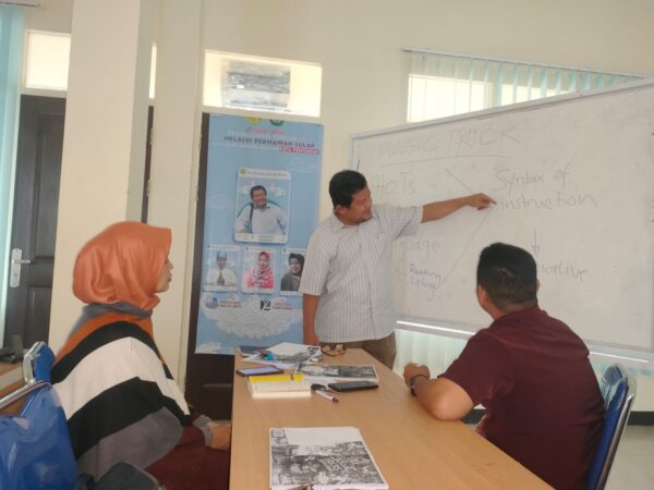 English teachers from various schools and English courses in Pontianak city participated in the workshop. Every participant was engaged in every single program of the workshop enthusiastically. They were involved in the presentation, class discussion, group work, and whole-class presentation. The group work was facilitated by three facilitators who are also IKIP PGRI lecturers and run smoothly. One of the facilitators, Malikul Hafiz, said that every group prepared their presentation enthusiastically. Two other facilitators of the workshop, Finny Anita and Rahayu Meliasari, added that all of their presentations were creative, detailed, and amusing.