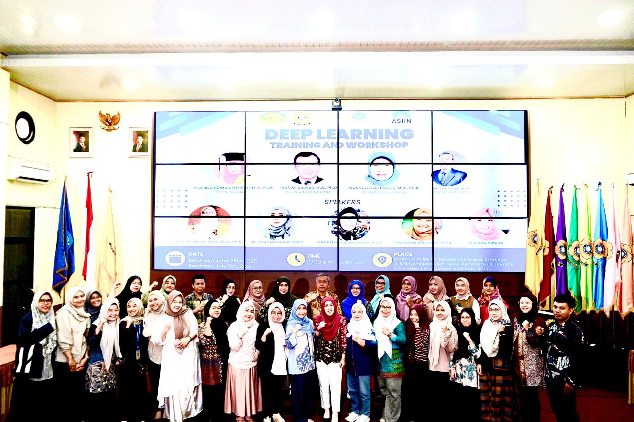 Palembang, June 28, 2025 — In order to strengthen the competence of English teachers and lecturers in Indonesia, The Association of Teachers of English as a Foreign Language in Indonesia (TEFLIN) in collaboration with Universitas Sriwijaya (UNSRI) successfully held a Training and Workshop session on “Deep Learning in English Language Teaching”, Saturday (28/6), at the UNSRI Language Center (UPT Bahasa), Bukit Besar, Palembang.