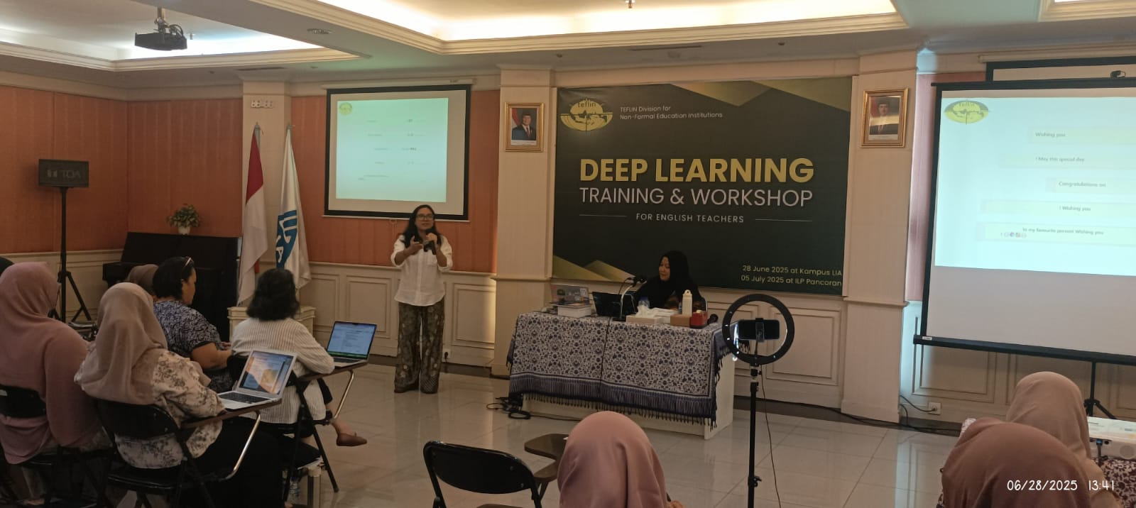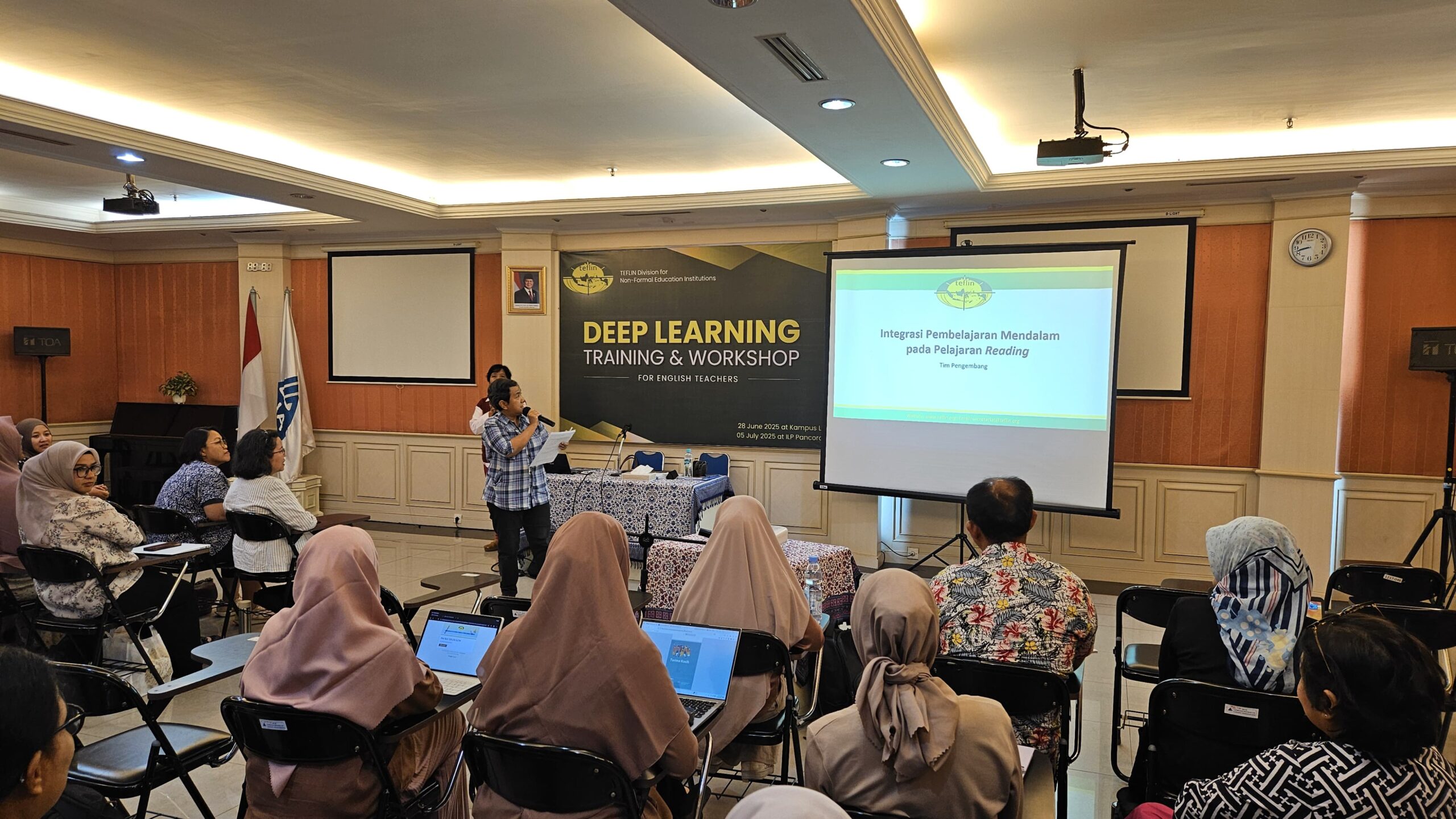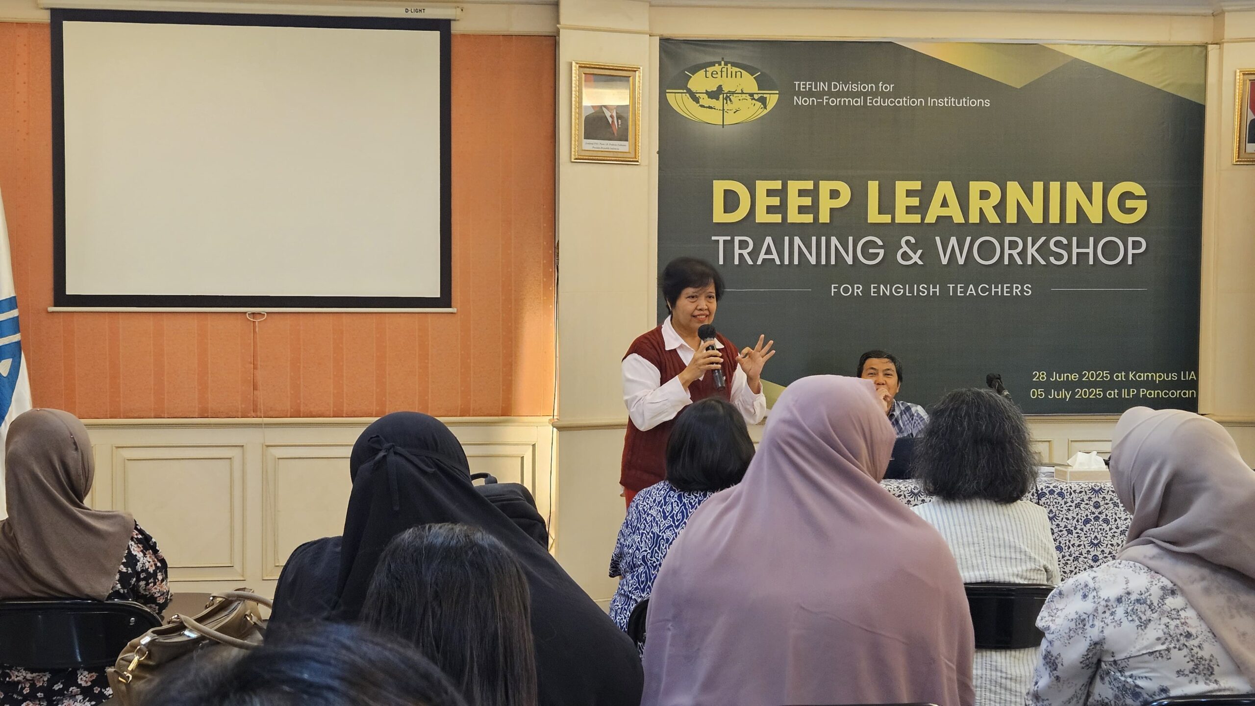 The TEFLIN Division’s Non-Formal Education section recently hosted a successful teacher training and workshop on deep learning in English language teaching, specifically focusing on listening skills. Held on July 5, 2025, at ILP Pancoran, the event gathered 38 English teachers from ILP, LB LIA, LBI FIB UI, Curiokids Indonesia, and other prominent language institutions.