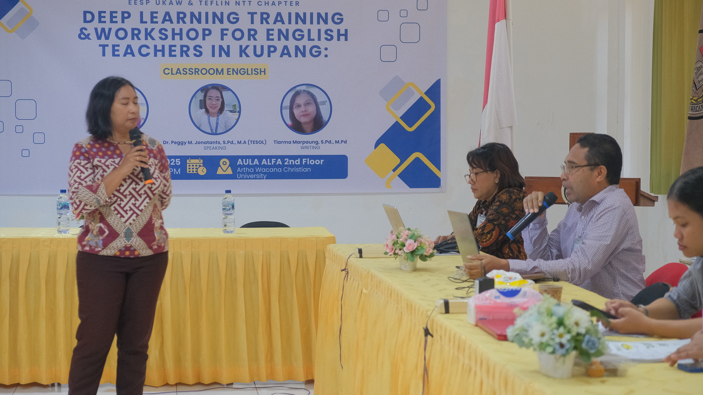 Kupang, July 18-19, 2025 and Ngada regency, August 1-2, 2025 — In high dedication and commitment to improve the quality of English language teaching in the region, a Deep Learning Training and Workshop was successfully held on Friday and Saturday, July 18-19, 2025, at Universitas Kristen Artha Wacana (UKAW) Kupang, and on Friday and Saturday, august 1-2, 2025 at SMPS St. Yoh Berkhmans, Mataloko, East Nusa Tenggara (NTT).