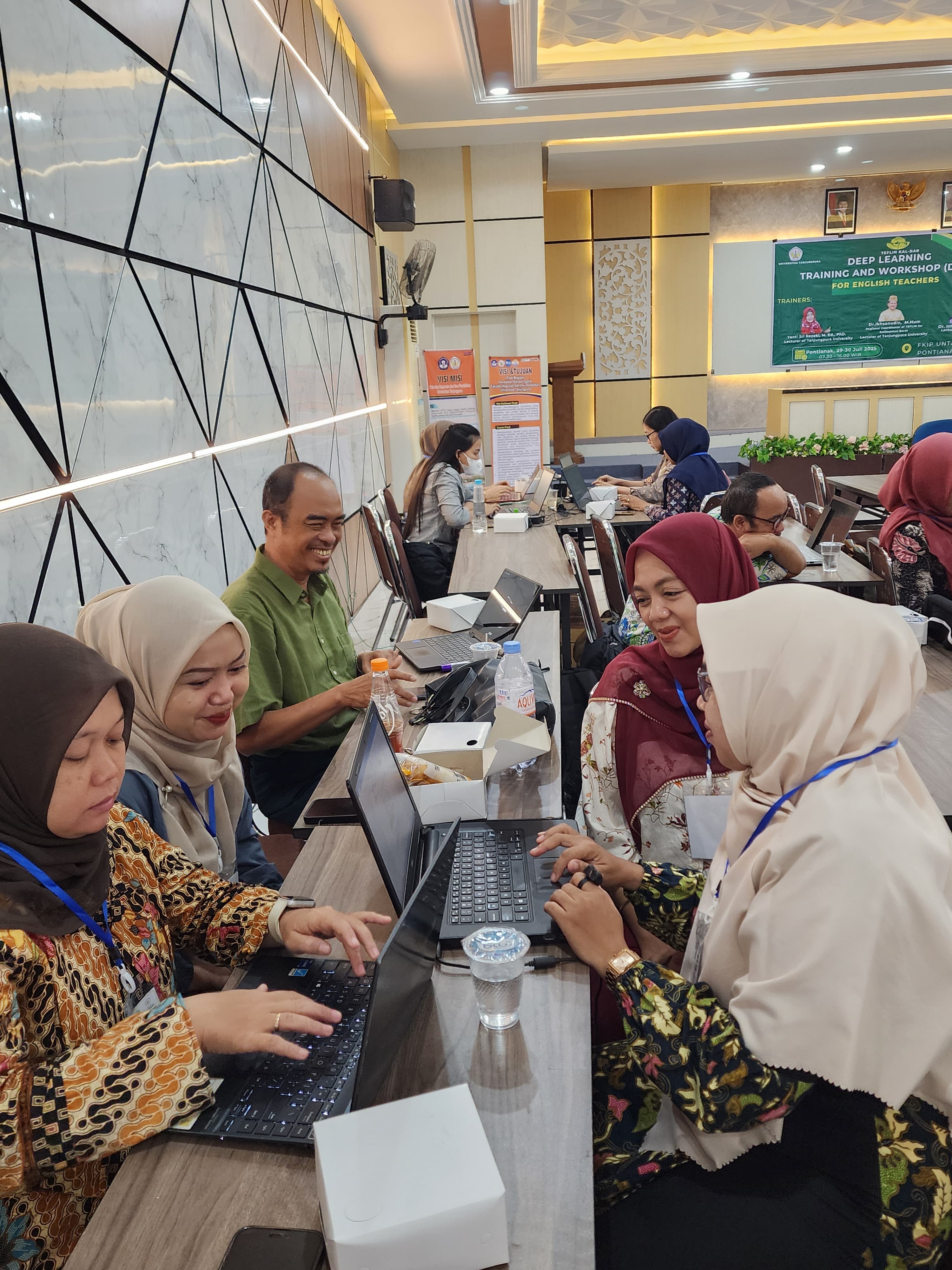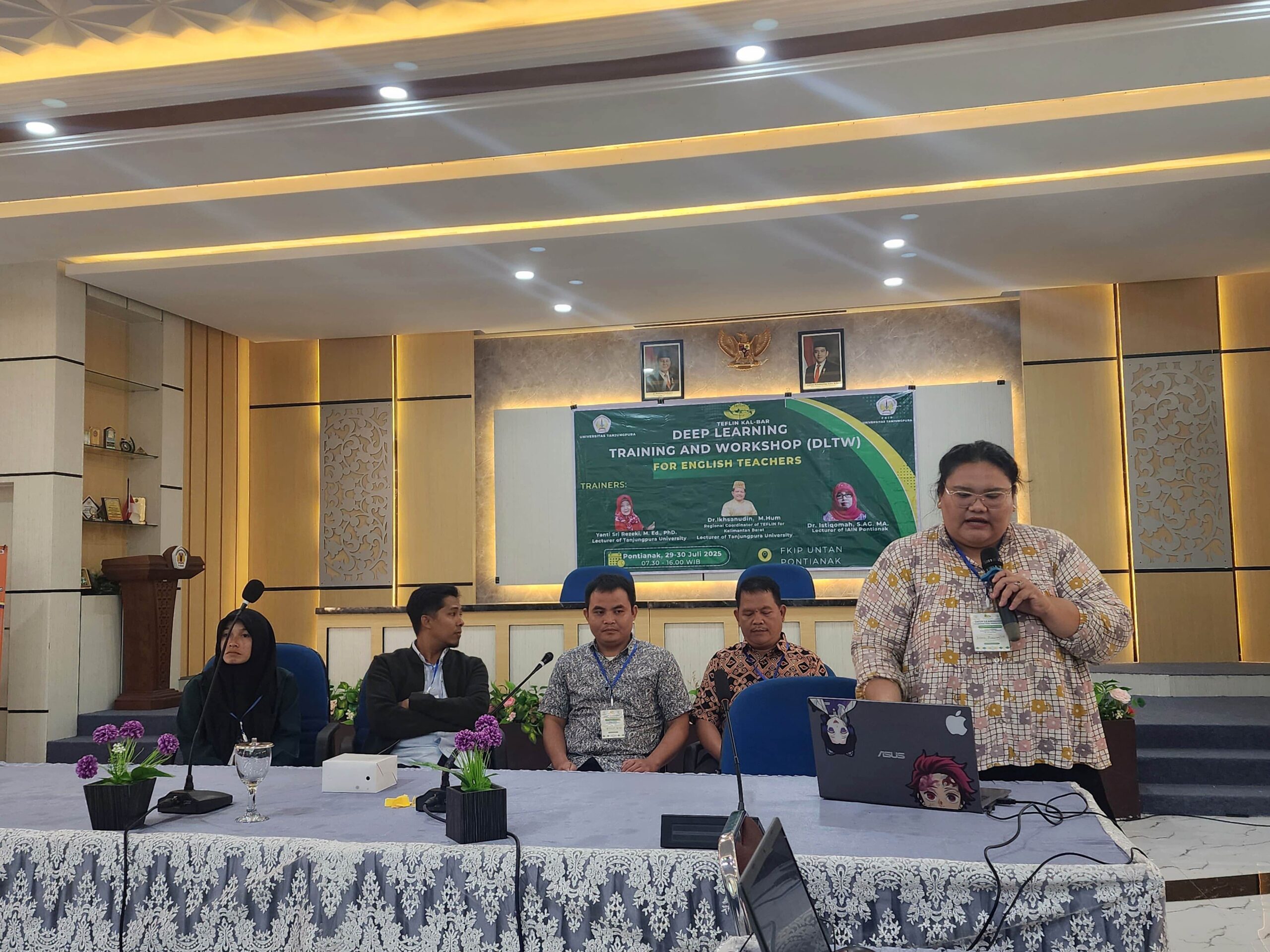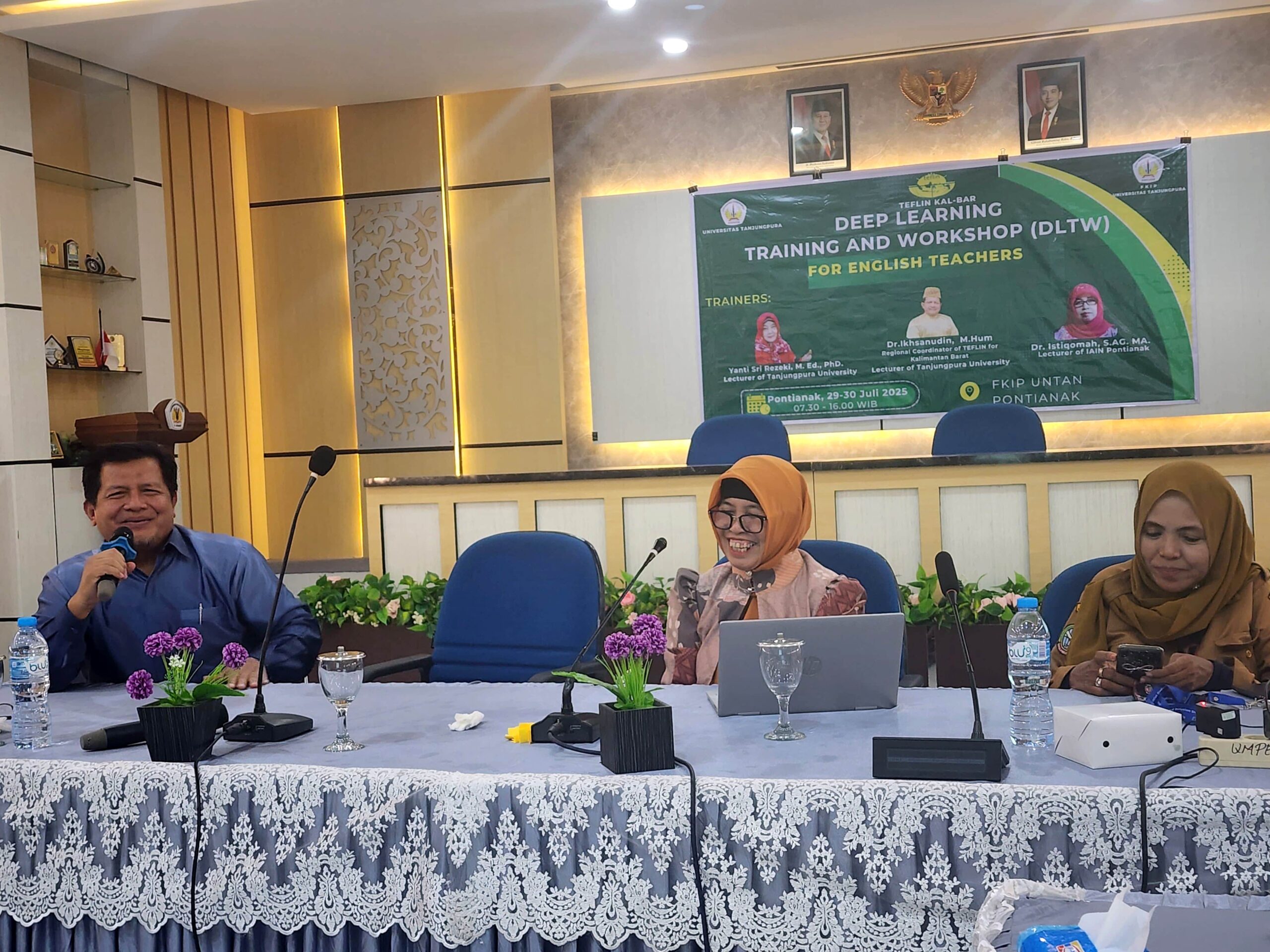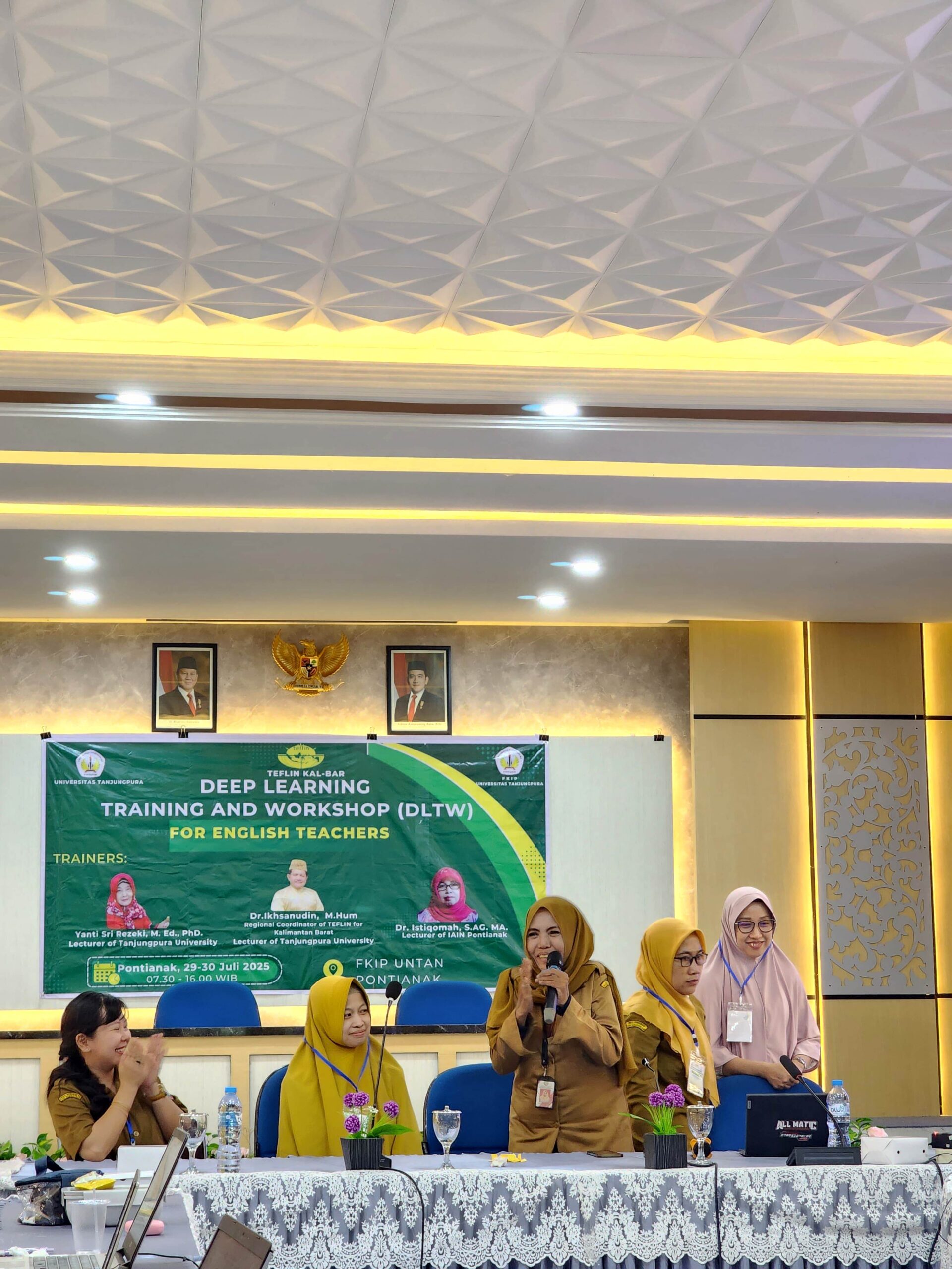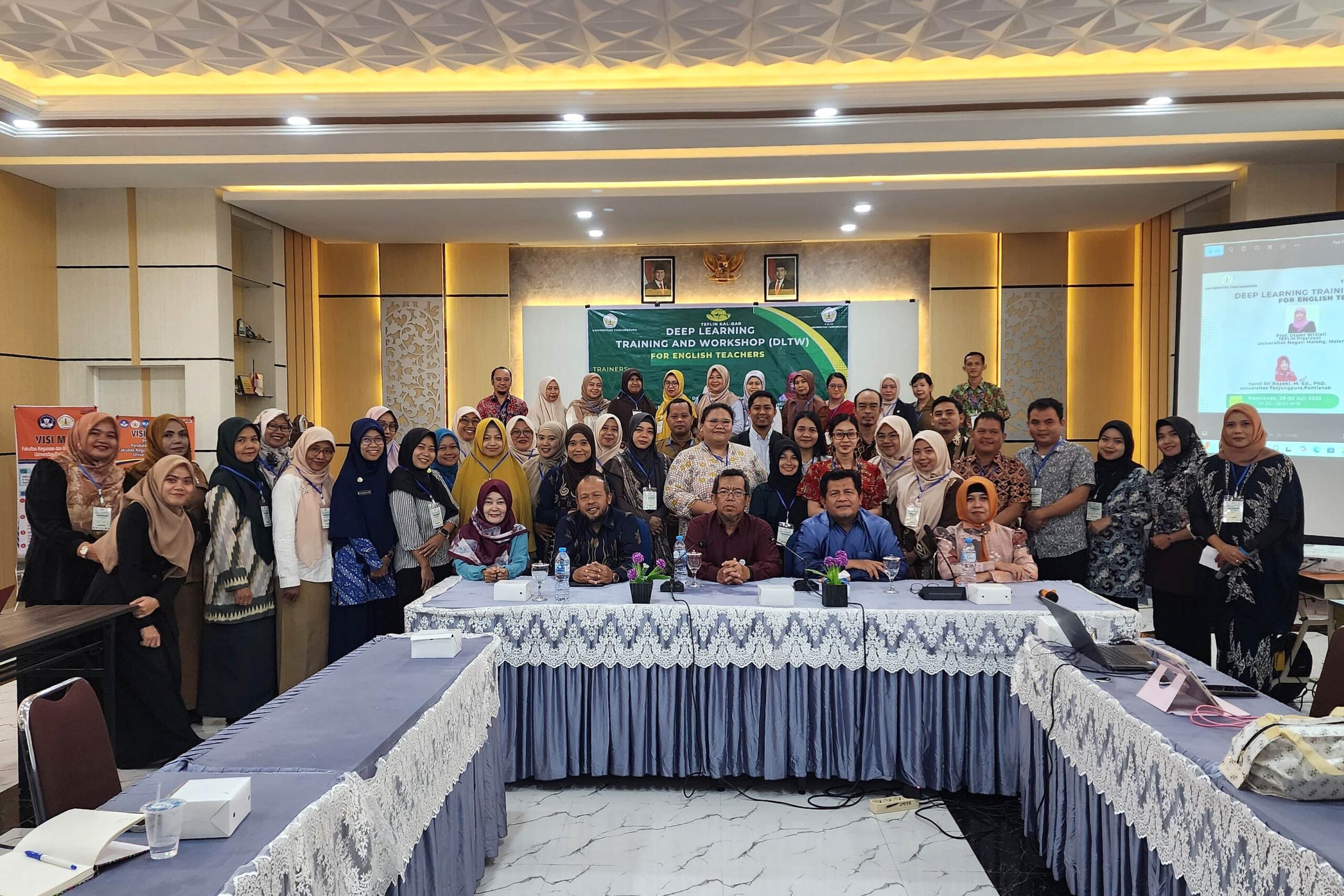 The Deep Learning Training and Workshop (DLTW), organised under the coordination of TEFLIN West Kalimantan, was successfully held from 29 July to 9 August 2025 in two cities — Pontianak and Singkawang. The event aimed to strengthen English teachers’ pedagogical competence and understanding of deep learning, emphasising conscious, meaningful, and joyful learning strategies in classroom practice.