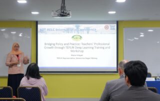 The Association for the Teaching of English as a Foreign Language in Indonesia (TEFLIN) proudly highlights the participation of Maria Hidayati as its representative attending the 60th RELC International Conference, held by Southeast Asian Ministers of Education Organization, Regional Language Centre.